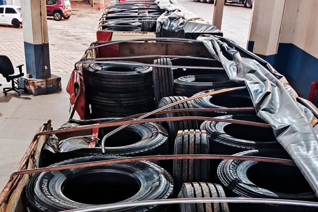 A Secretaria de Fazenda (Sefaz-MT) reteve uma carga de 312 pneus que estava sendo transportada sem nota fiscal, em operação realizada em Rondonópolis, no último sábado (8.11). A ação foi conduzida de forma conjunta entre a equipe de fiscalização do Posto Fiscal Benedito de Souza Corbelino, a Polícia Rodoviária Federal (PRF) e a Polícia Militar (PM-MT).