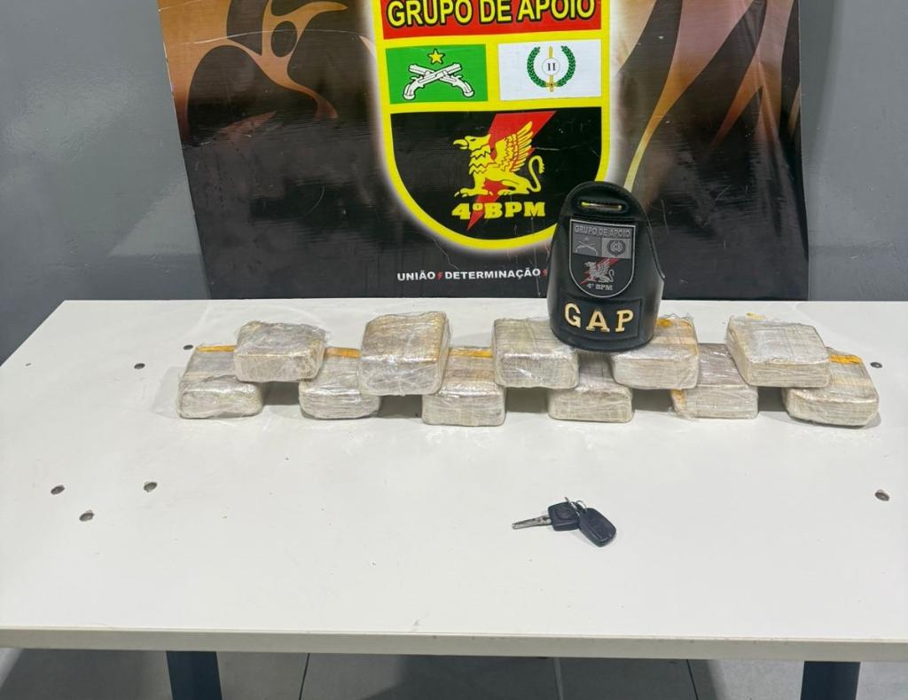 Diante da denúncia, as equipes se deslocaram até a região e localizaram o carro com as portas abertas, sem nenhum ocupante. Em busca veicular, os militares flagraram no porta malas 11 tabletes de pasta base de cocaína. A carga foi entregue à delegacia para registro do boletim de ocorrência.