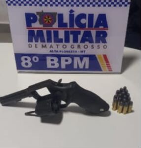 Policiais militares do 8º Batalhão prenderam dois homens, de 39 e 73 anos, por porte ilegal de arma de fogo, nesta terça-feira (20.1), em Alta Floresta. Um dos suspeitos intimidou e constrangeu o próprio filho com ameaças, em um desentendimento, envolvendo uma exploração de minério. Com os suspeitos, foram apreendidos um revólver e 16 munições de calibre .38.