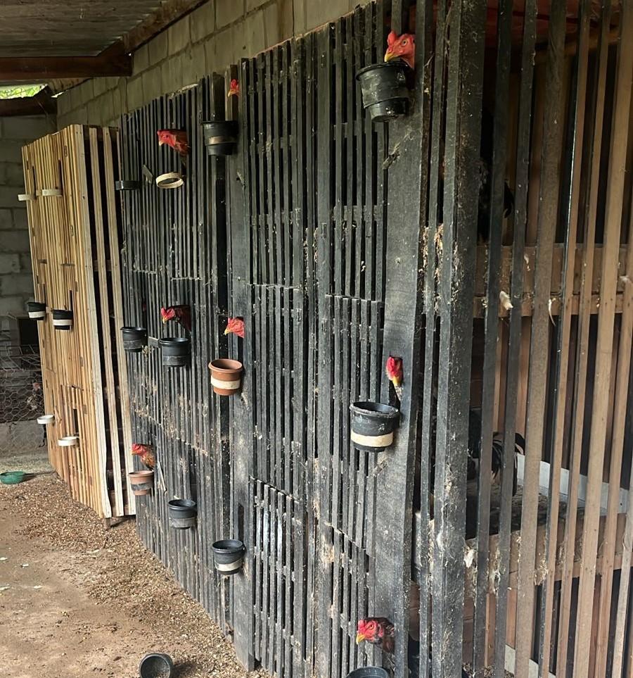 Durante a averiguação, alguns galos apresentavam lesões aparentes, como cristas e esporas cortadas, além de ferimentos compatíveis com prática de combate entre animais, configurando indícios de maus-tratos. Também foram localizados diversos apetrechos comumente utilizados em rinhas, como arena (roda) de combate, equipamentos de ventilação, seringas, vitaminas, chocadeira com ovos, além de instrumentos de preparo e treinamento, incluindo biqueiras, buchas e esporas artificiais a serem instaladas nos animais durante as lutas.